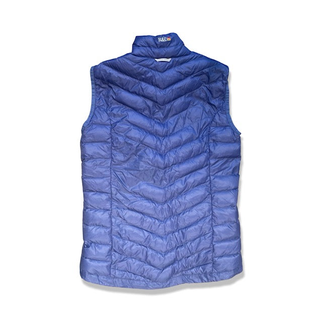 Västen är isolerad med premium 90/10 anddun med 700 fill power som ger imponerande värme i förhållande till sin låga vikt. Det slitstarka, vindavvisande yttertyget i polyamid håller blåsten ute, medan ett mjukt fleecefodrat hakskydd ger extra komfort. Förvaringen är praktisk med två blixtlåsförsedda handfickor och en innerficka för värdesaker. Elastiska kantband vid ärmhålen och en dragsko i nederkanten hjälper till att kapsla in värmen.