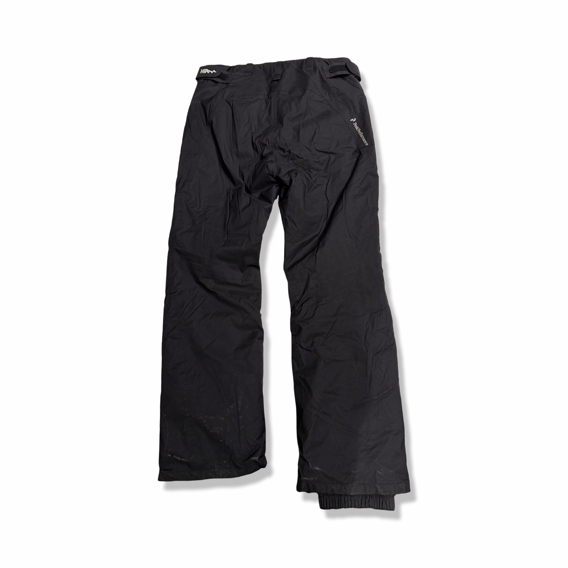 Byxan är gjord i Peak Performances HiPe-material som är vind- och vattentätt samtidigt som det andas väl vid aktivitet. Ett värmande foder håller kylan borta utan att bli klumpigt. Midjan justeras enkelt med kardborre för rätt passform, snölås i bensluten stoppar snö och kyla, och dragkedjefickor håller småsaker på plats under åkningen.
