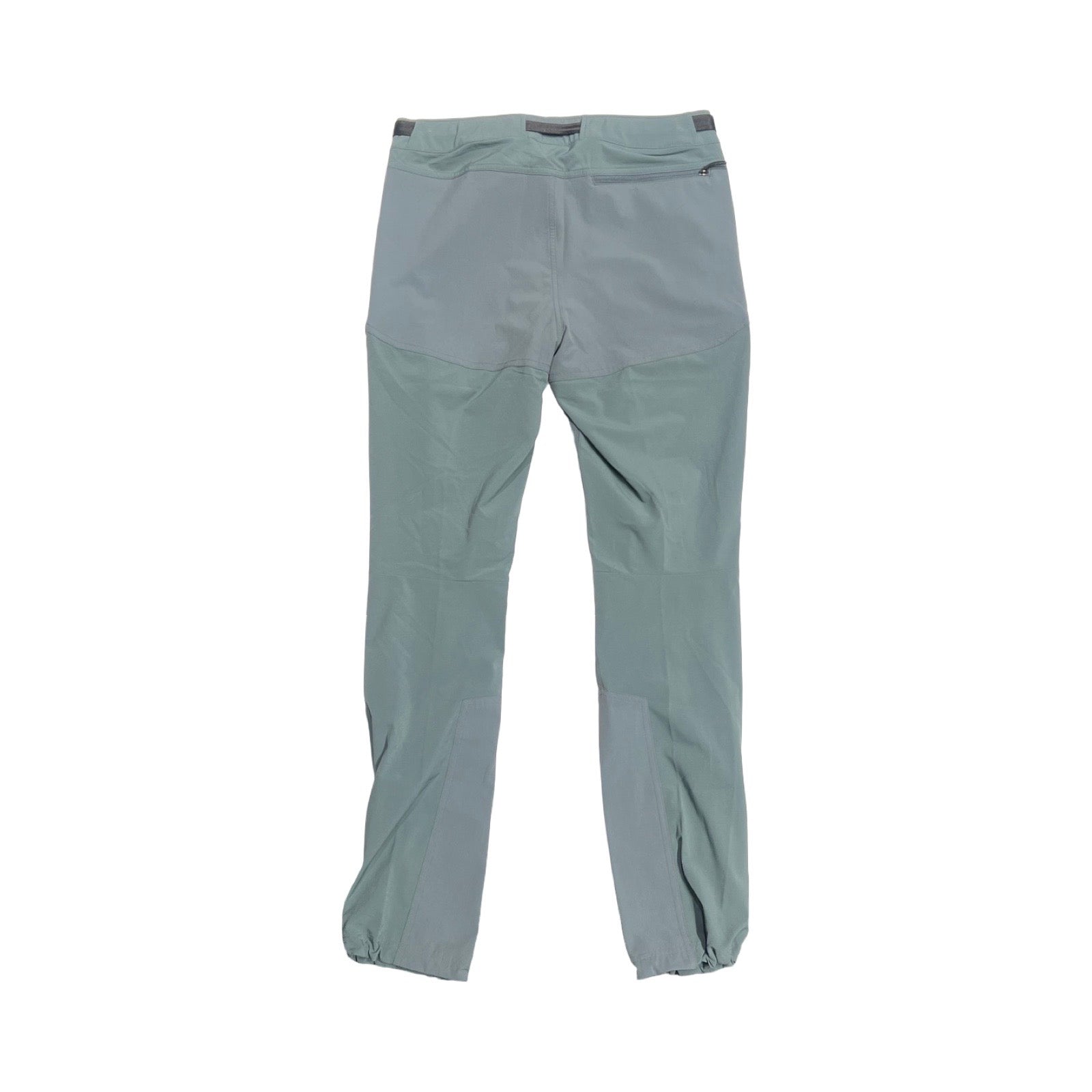 Vier-Wege-Stretch in Kombination mit einem vorgeformten Schnitt sorgt für maximale Bewegungsfreiheit. Die schlanke, gurttaugliche Passform bleibt dank eines flachen Bunds mit integriertem, verstellbarem Gürtel zuverlässig an Ort und Stelle. Exponierte Bereiche sind mit strapazierfähigeren Materialien verstärkt, um Abrieb durch Fels und Ausrüstung besser zu verkraften. Mehrere Reißverschlusstaschen – Eingrifftaschen, eine Gesäßtasche und eine Oberschenkeltasche – sind so platziert, dass sie auch mit Klettergurt oder Hüftgurt eines Rucksacks gut erreichbar bleiben. Per Kordelzug verstellbare Beinabschlüsse dichten sauber über Bergstiefeln ab. Eine PFC-freie DWR-Imprägnierung bietet grundlegenden Schutz gegen leichte Nässe.