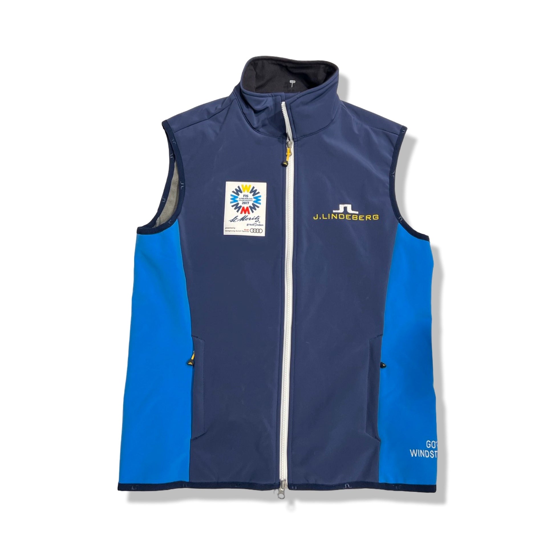 Praktische Windstopper-Weste von J.Lindeberg, perfekt als zusätzliche Schicht für windige Tage am Berg oder beim Skitraining. Das ist das Modell St. Moritz Uniform.