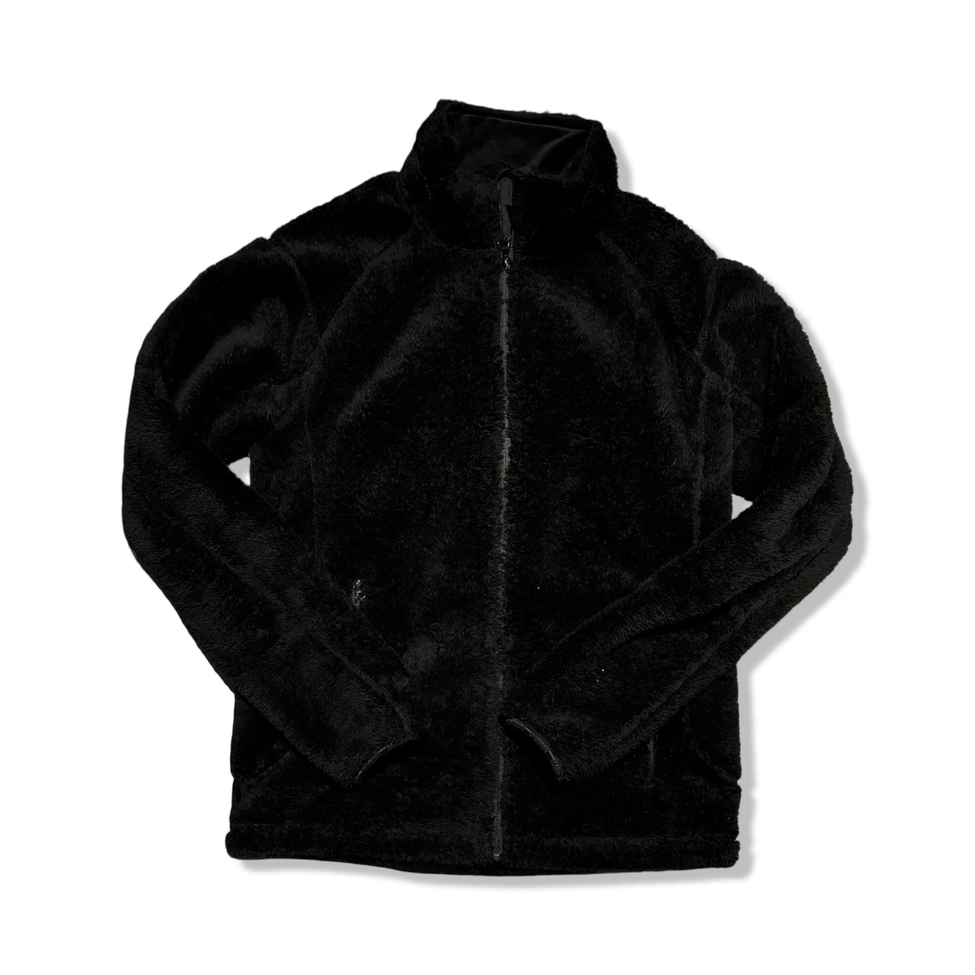 It features a full-length front zipper and a high collar to keep out the chill. Two zippered hand pockets secure small essentials and offer quick hand warmth. The fleece delivers reliable comfort without feeling heavy, layering smoothly without bulk.