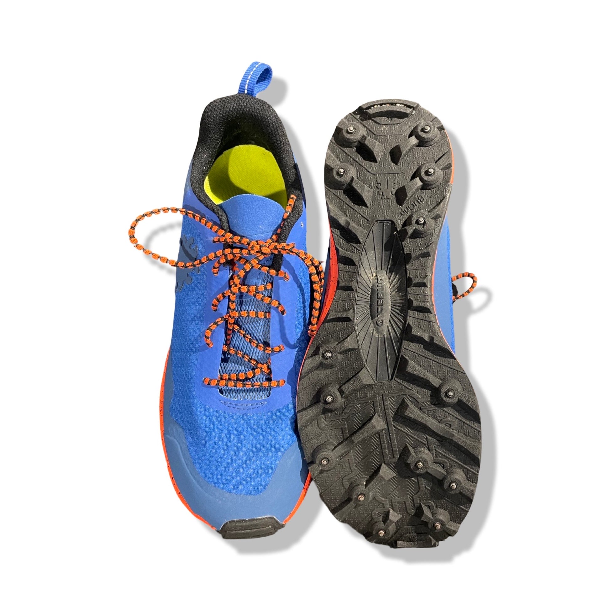 Med sina 275 gram (US9) är Oribi BUGrip en av världens lättaste vinterlöparskor. Den sömlösa ovandelen i bluesign® Polyester mesh är flexibel och en laminerad vädersköld ger bra skydd mot fukt när du springer i snö. Ovandelen har även ett TPU-stänkskydd som skyddar vid löpning i stenig terräng.