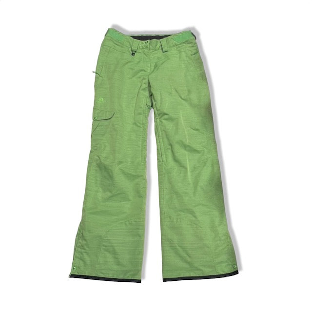 Fina syntetisolerade skidbyxor från Salomon, gjorda med deras Clima Pro. Byxorna går att justera i midjan med kardborrband och har även ventialtions dragkedjor på insidan av låren. Byxorna är också utrustade med snölås i bensluten för att se till att det inte kommer in någon snö.
