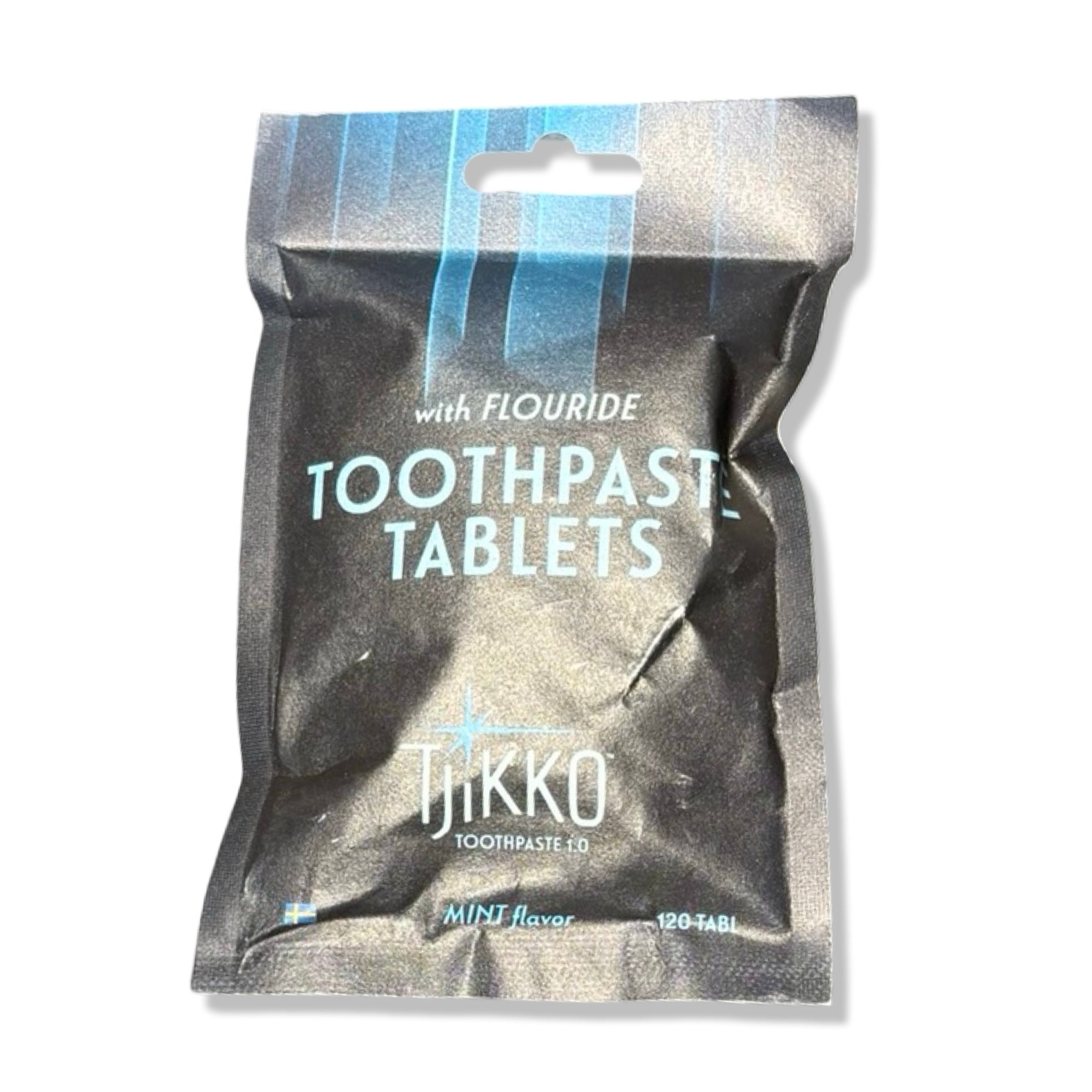 Tandkräm i tablettform. Är bikarbonatsbaserad och innehåller till 100% ingredienser som aktivt motverkar karies. Den har en fräsch mintsmak med behaglig löddermängd. Tugga sönder - borsta med torr tandborste – Spotta ut! Inget vatten behövs före eller efter! Innehåller 1450ppm fluor.