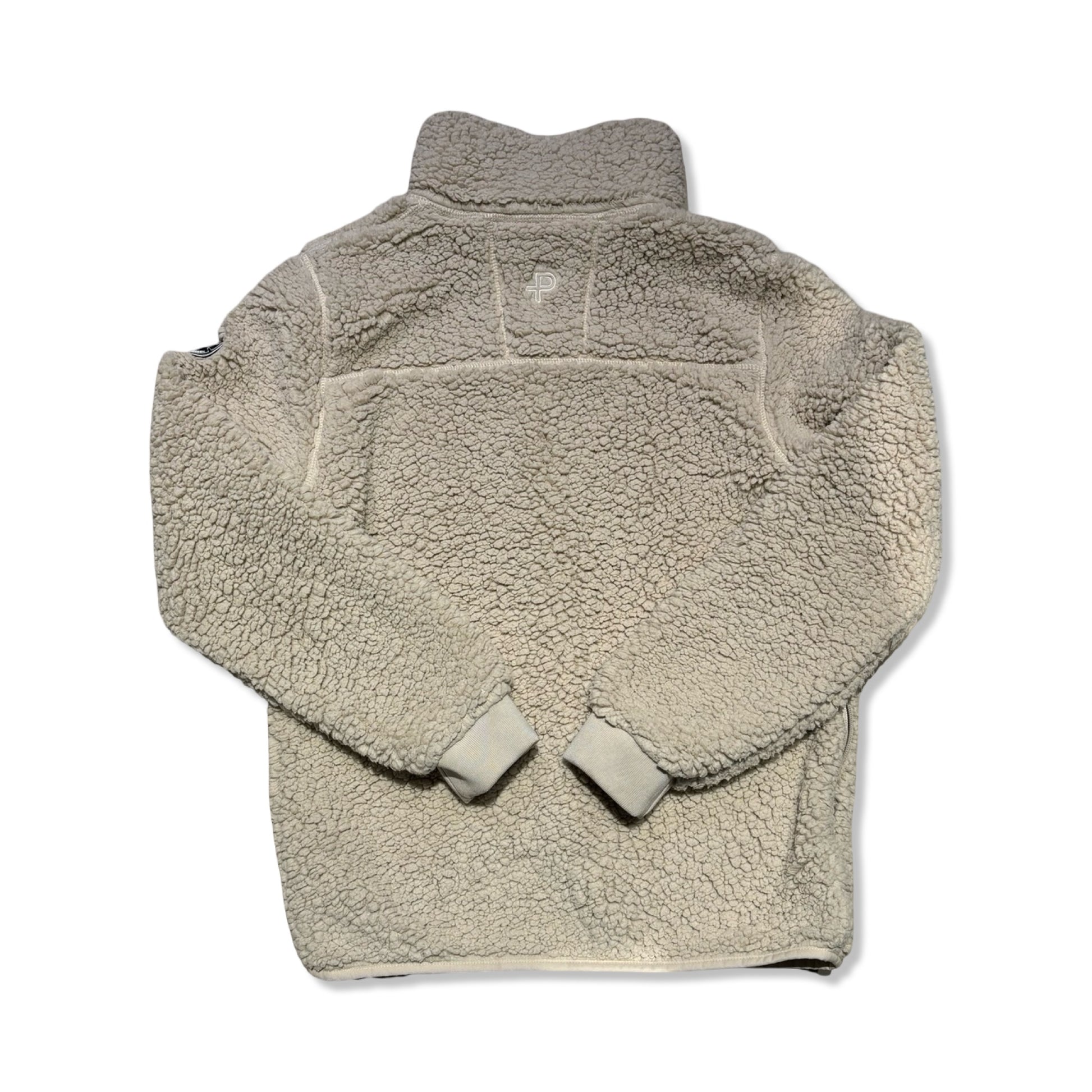 Tröjan är gjord i lätt sherpafleece som ger mycket värme i förhållande till vikt. Kragen har tryckknappar och en vävd knappslå för enkel reglering av ventilation. På bröstet finns en vävd ficka med knappstängning, och i höger sidsöm sitter en diskret ficka med dold dragkedja för småsaker. Elastisk kantning vid nederkant, ärmslut och upptill på kragen håller värmen på plats, medan flatlocksömmar ger skön komfort. Passformen är regular fit.