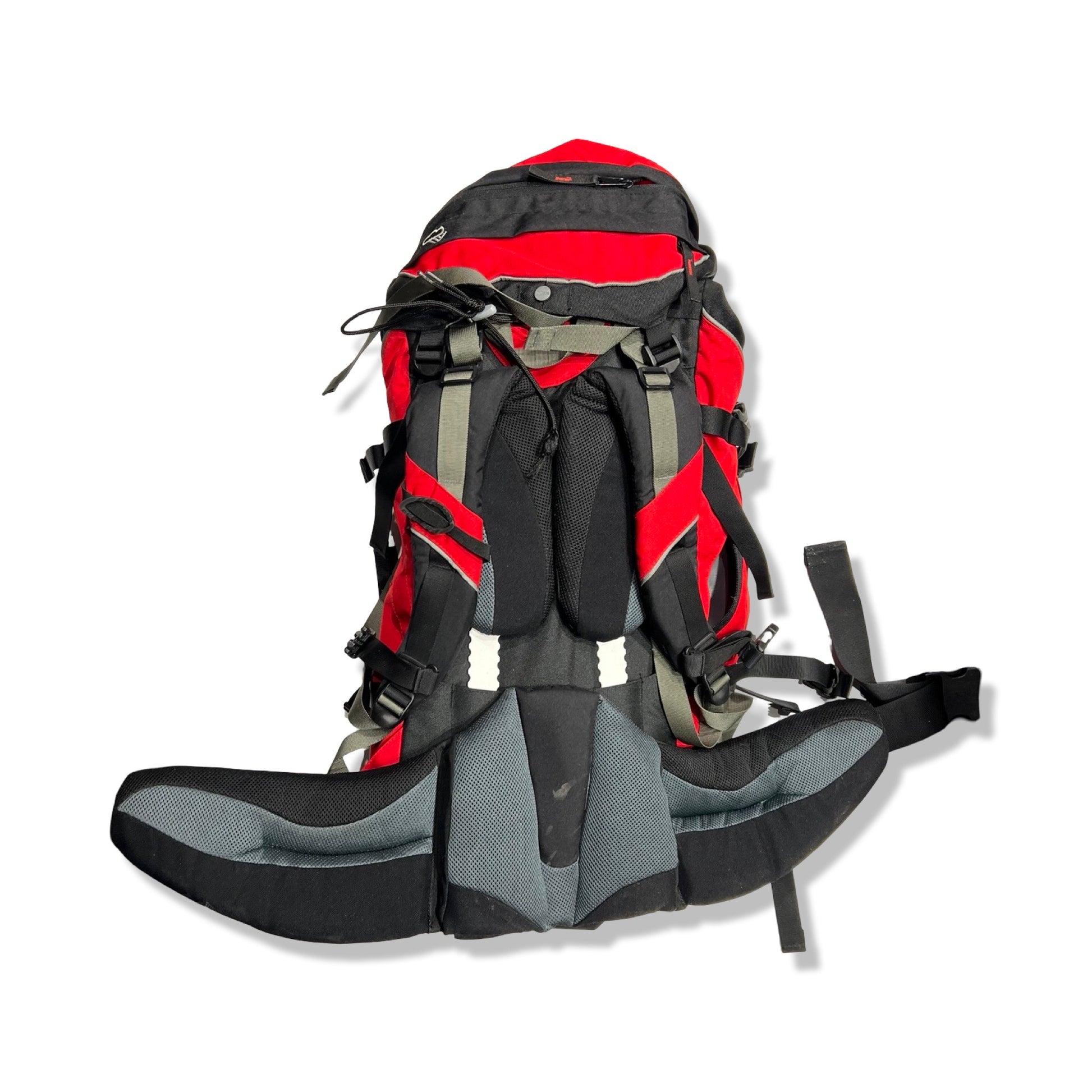 Ryggsäcken är byggd för bekväm bärning med ventilerad ryggpanel, vadderade och justerbara axelremmar samt ett stabilt höftbälte som avlastar effektivt. Fronten har en dragkedjeöppning för snabb åtkomst till huvudfacket, och topplocket ger extra utrymme med praktiska fickor. Sidorna är försedda med kompressionsremmar som håller lasten på plats, och det finns fästpunkter för stavar eller annan utrustning.