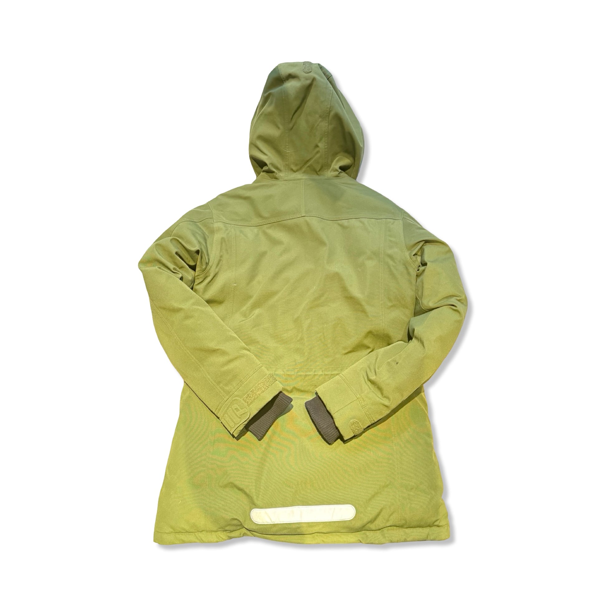 Jackan har en längre passform som ger skönt skydd. Den är utrustad med fast huva och hög krage, hel dragkedja med skyddande slå samt flera praktiska fickor: en bröstficka med dragkedja, två handfickor och en ärmficka. Ribbade innermuddar vid ärmsluten hjälper till att hålla värmen, och en reflexdetalj baktill ökar synligheten.
