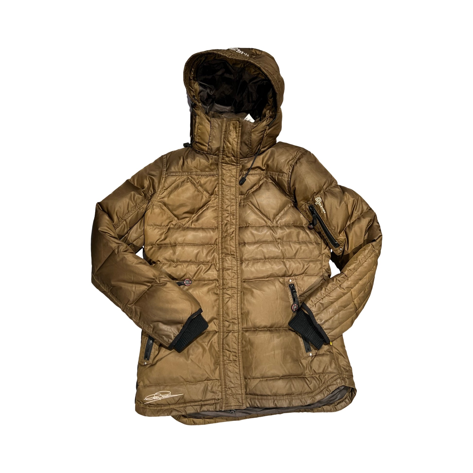 Jackan har en justerbar huva och hög krage som skyddar när vinden tar i. Två handfickor med dragkedja håller händer och småsaker på plats, och en praktisk ärmficka rymmer det viktigaste nära till hands. Invändiga, ribbade muddar låser in värmen, medan den quiltade konstruktionen ser till att isoleringen ligger jämnt för en behaglig temperatur. Den något förlängda ryggen ger extra täckning när du rör dig.