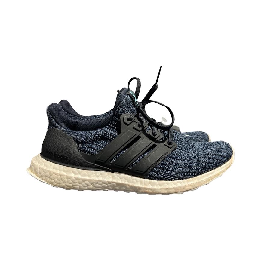 Denna version av adidas Ultra Boost 4.0 har en ovandel tillverkad av återvunnen plast från havet. Ovandelen är ventilerande och kommer i färgen Tech Ink med svarta och blå mönster. De klassiska tre adidas-ränderna syns i svart på sidorna som stödjande detaljer. På plösen finns Parley-logotypen, medan adidas-logotypen pryder framsidan av den upphöjda vita yttersulan. Den svarta hälkappan har Ultra Boost-märkning, och skon vilar på en vit formgjuten sula med Boost-mellansula för extra dämpning och energiåtergivning.