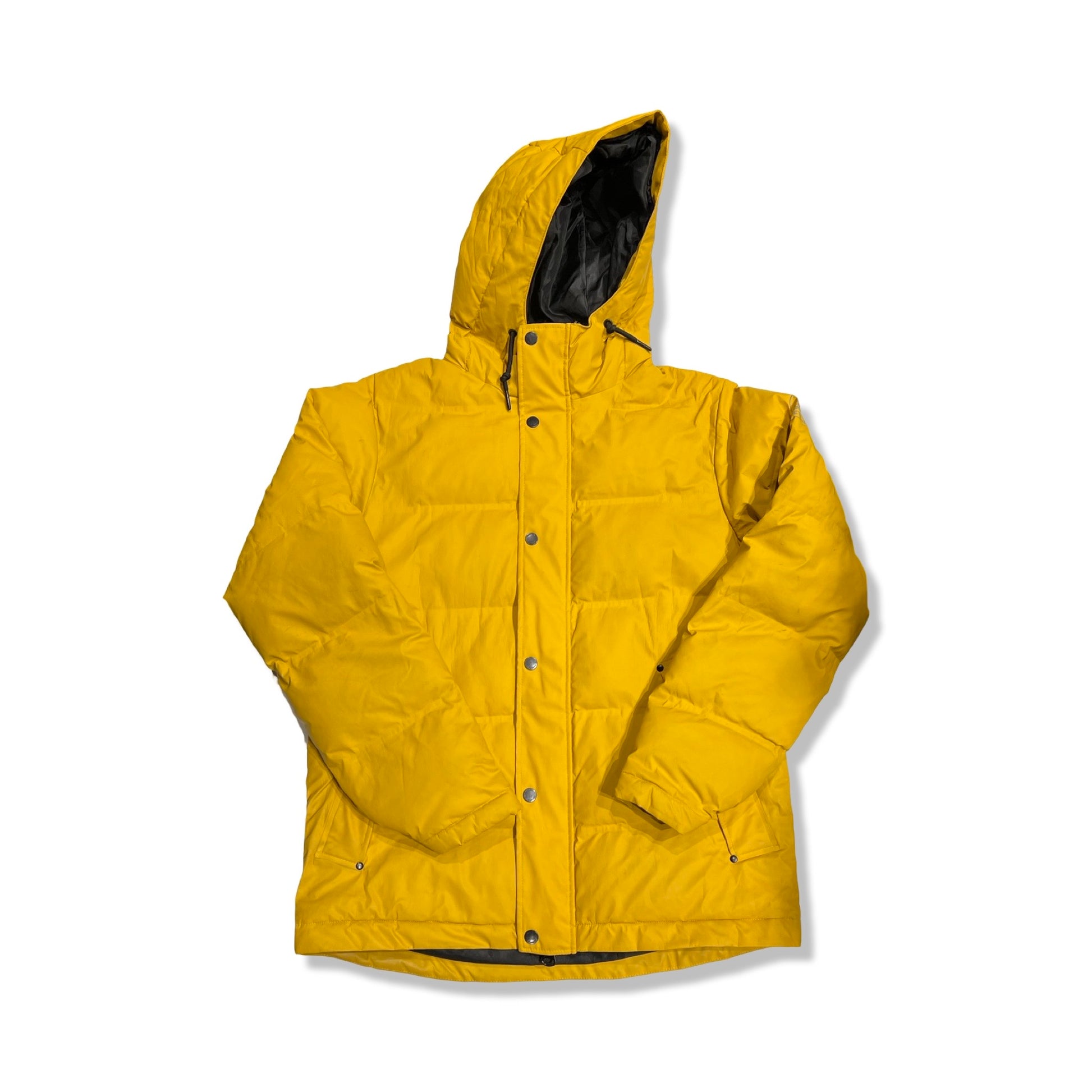 Den här vadderade regnjackan från Tretorn heter Baffle jacket och kommer i en klar gul färg som syns bra i alla väder. Jackan har en quiltad konstruktion med syntetfyllning som ger värme, och det mörka fodret i huvan skapar en snygg kontrast mot det gula yttermaterialet.