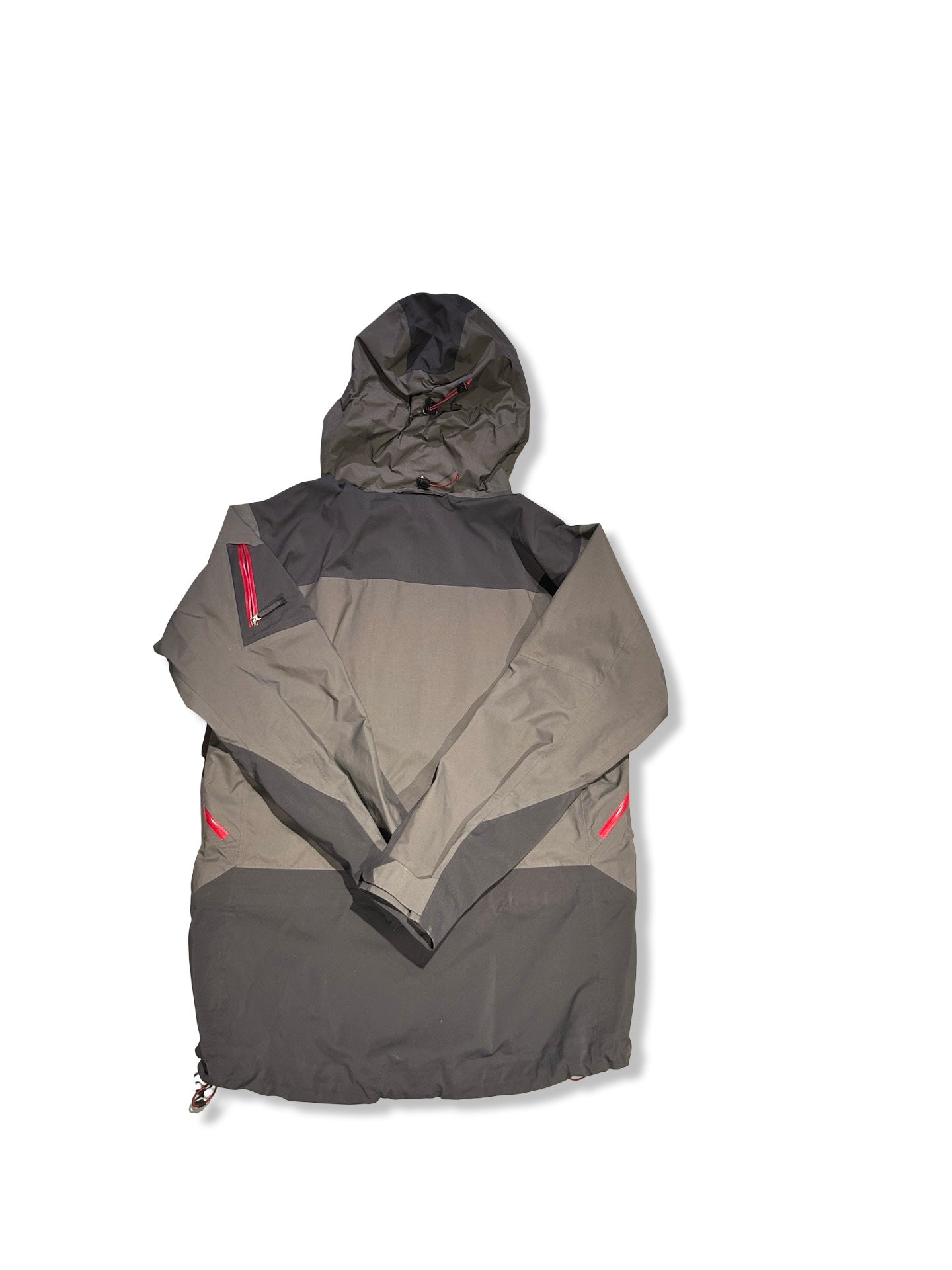 Jackan är konstruerad i ett robust trelagers GORE‑TEX Pro-material som ger pålitligt vind- och vattentätt skydd med hög andningsförmåga. Utsatta partier som axlar, ärmar, rygg och höfter är förstärkta för extra slitstyrka. Den har en hjälmkompatibel huva med 3‑vägs justering och förstärkt skärm, högt placerade bröstfickor som fungerar med sele samt en ärmficka med vattentät dragkedja. Ventilationsdragkedjor under armarna, justerbara ärmslut och dragsko i nederkant gör det enkelt att reglera klimat och passform under aktivitet.