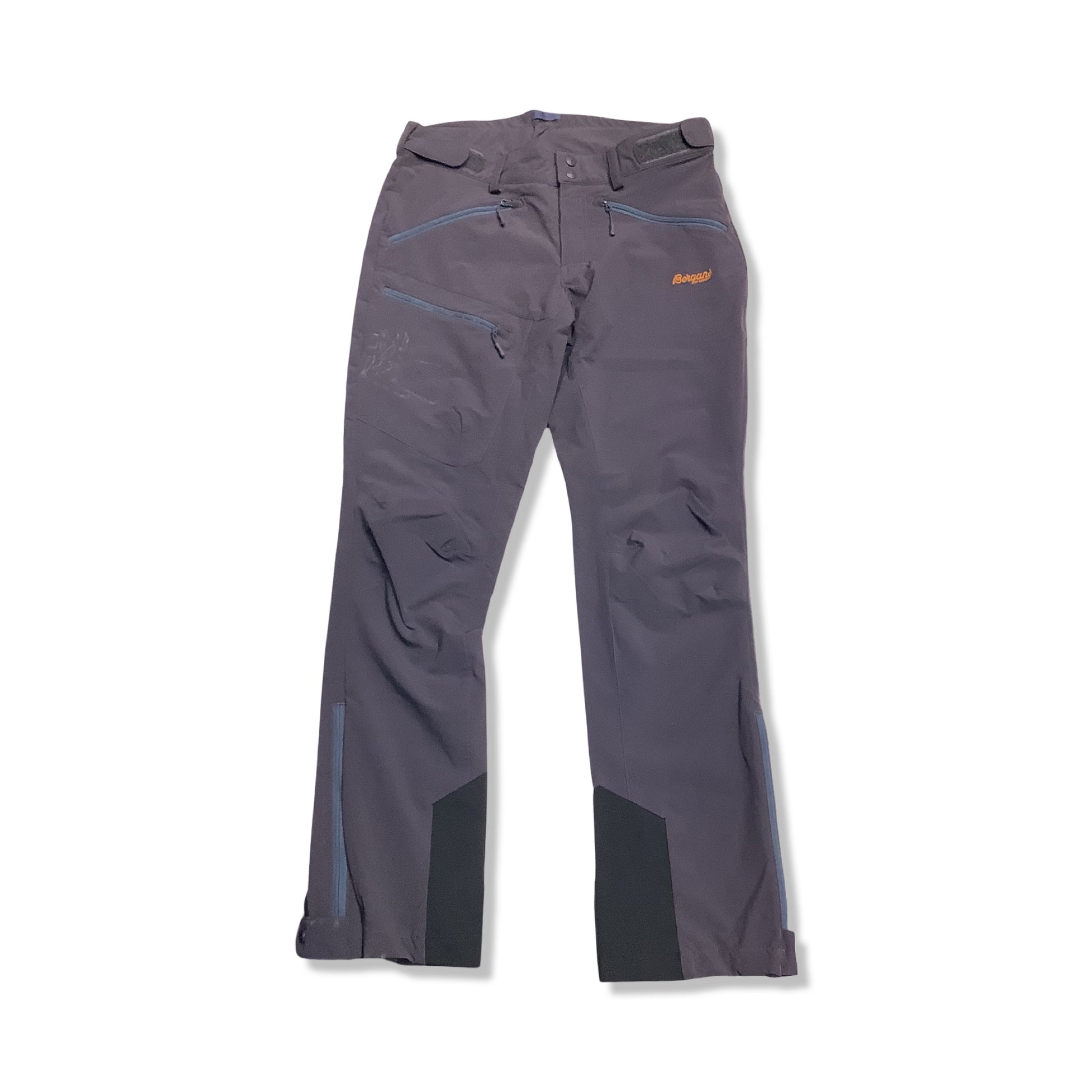 Detalerna är genomtänkta för aktivitet: justerbar midja med kardborre, bälteshällor och fästen för hängslen samt ett förhöjt ryggparti som ger extra komfort. Förböjda knän ger rörelsefrihet, och insidan av bensluten är förstärkta för slitstyrka. Bensluten kan justeras med tryckknappar och har dragkedja med kil för att passa över kängor eller pjäxor. Framtill finns meshfickor som även fungerar som ventilation, och på låret sitter en särskild ficka för lavinsändare med invändig hälla.