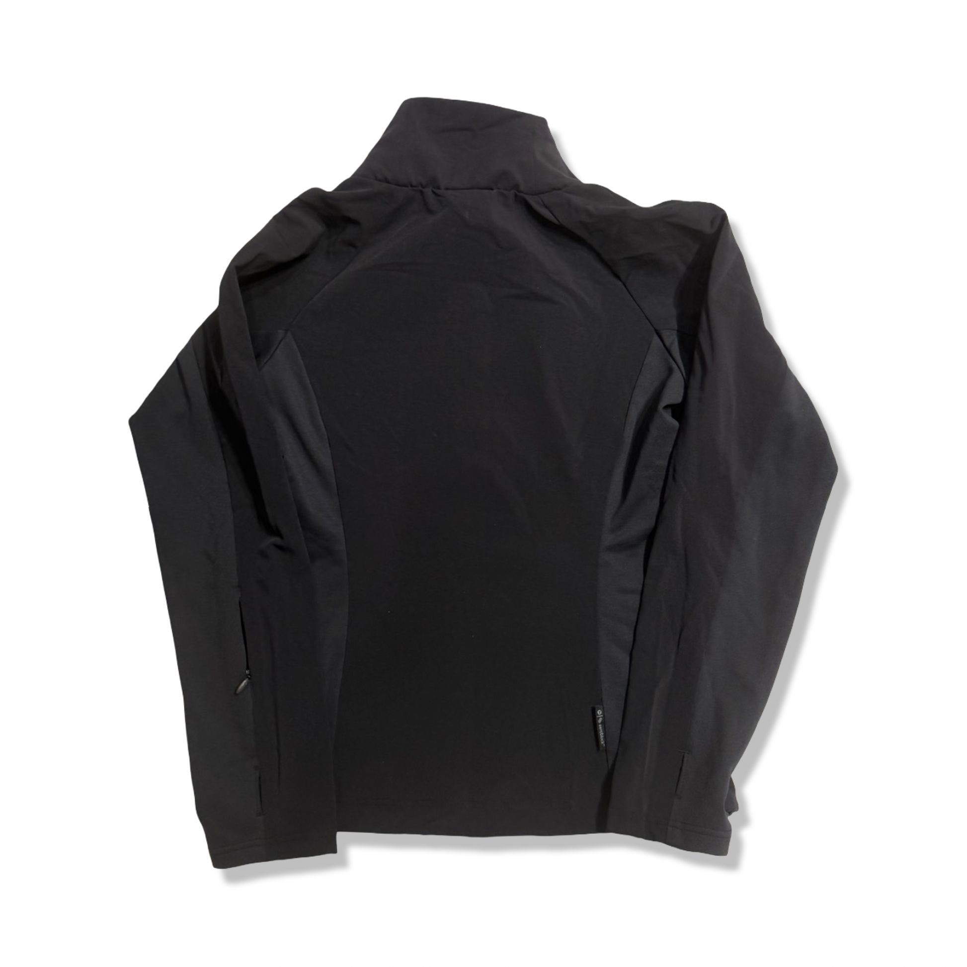 Jackan har hög krage och hel dragkedja framtill, samt två handfickor med dragkedja för det viktigaste. Den följsamma softshellkonstruktionen och raglanärmarna ger skön rörelsefrihet, och den huvlösa designen sitter smidigt under ryggsäckens remmar.
