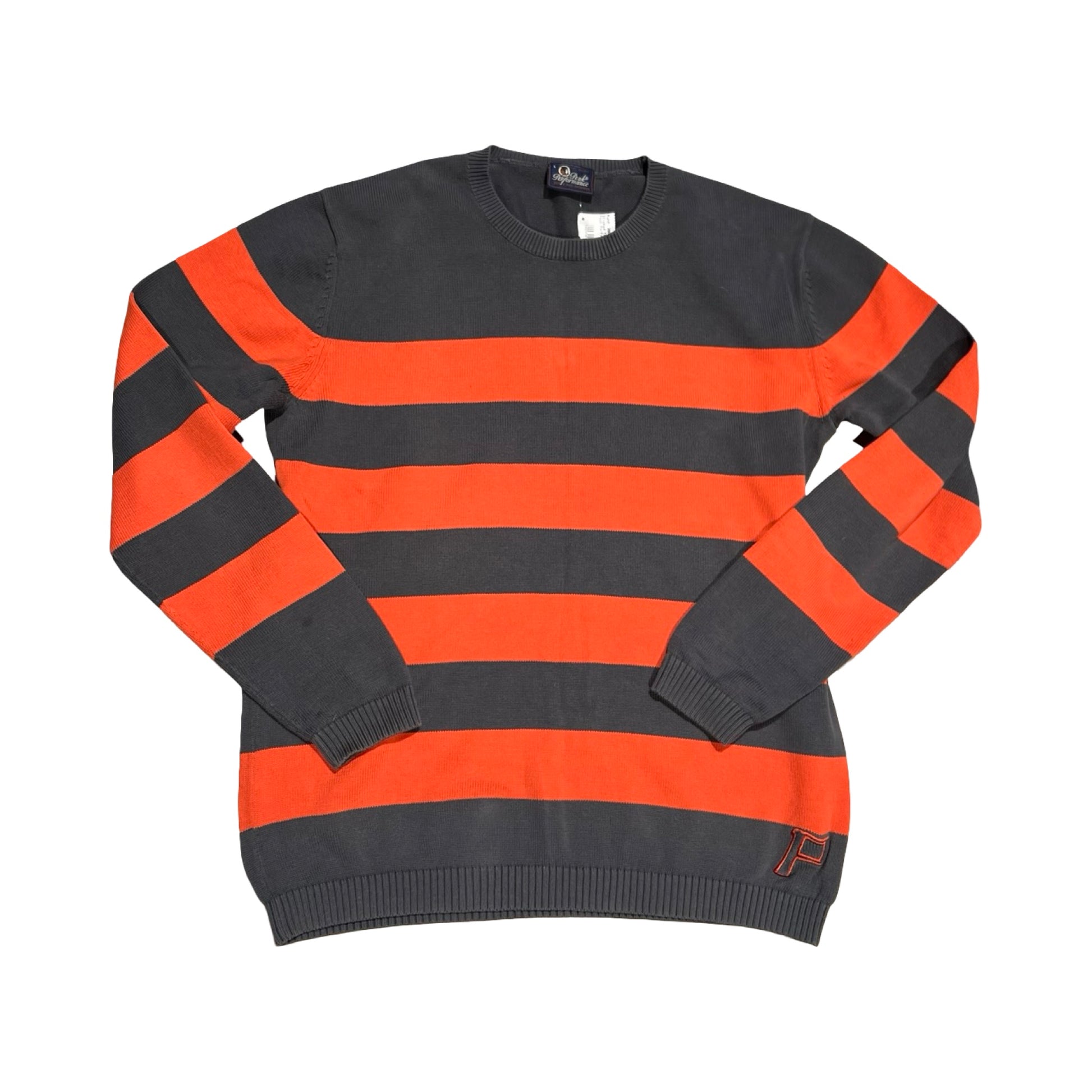 Tröjan har rund hals och en mjuk, följsam stickning som är skön mot huden. Ribbstickade muddar och nederkant håller passformen på plats, och den randiga designen ger ett rent, sportigt uttryck som funkar både till och från träning och på helgens promenader.