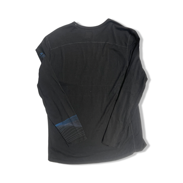 Tröjan är gjord i merino av medelvikt (200 g/m²) som reglerar kroppstemperaturen, andas väl och motverkar lukt naturligt. Den mjuka känslan mot huden kombineras med platta sömmar som minimerar skav. Lång ärm och rund hals gör den enkel att bära under skal eller isolering.