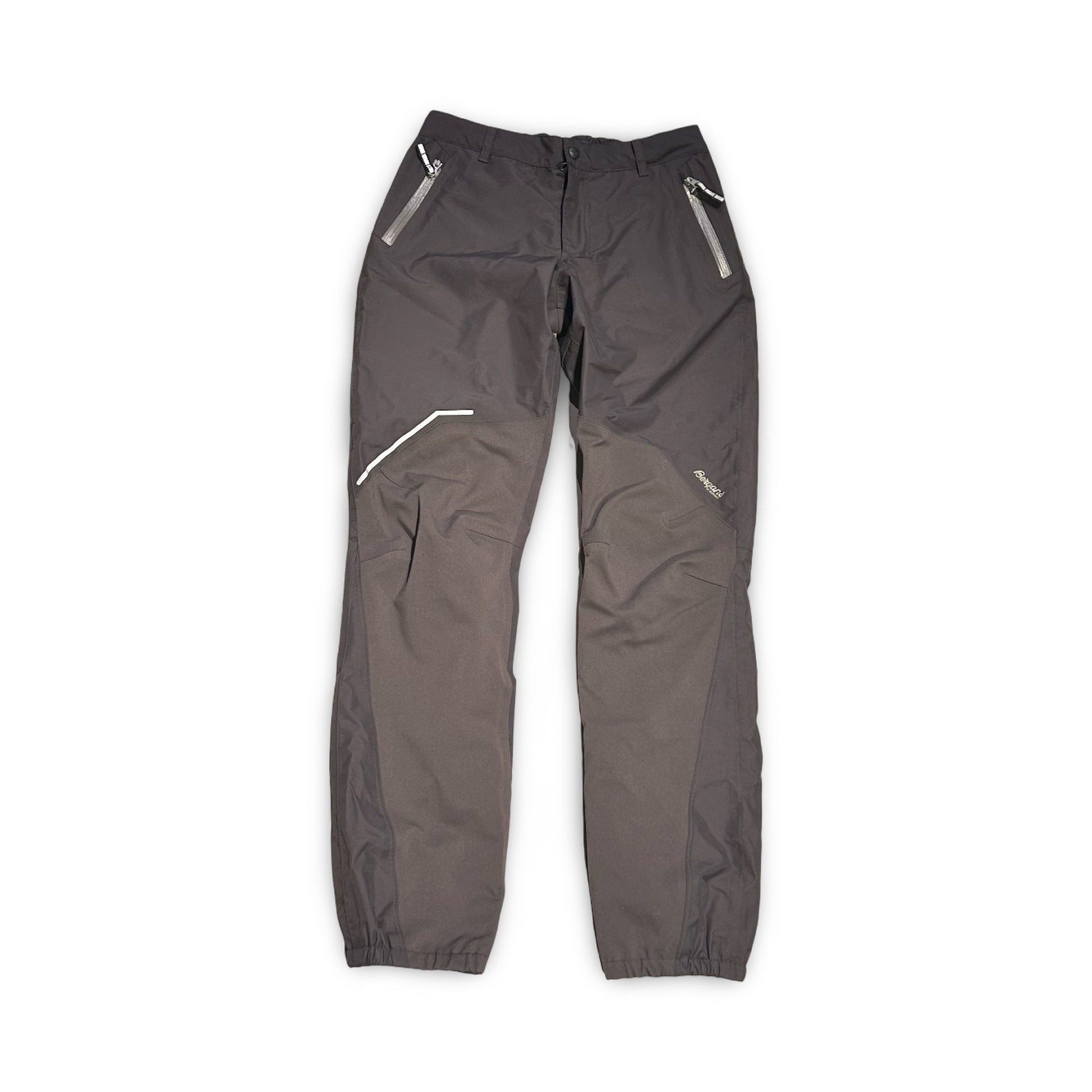 Byxan är byggd i 2-lagers Bergans Element Active som ger helt vind- och vattentätt skydd (minst 10 000 mm) samtidigt som den andas. Ett luftigt meshfoder ökar komforten. Förstärkningar i sätet och från knäna och nedåt ger extra slitstyrka, medan förböjda knän och elastisk midja ger rörelsefri passform. Resår i bensluten håller byxan på plats över kängor. Två framfickor med dragkedja rymmer småsaker, och 3M-reflexer ökar synligheten i skymning. Materialen är Bluesign-godkända.