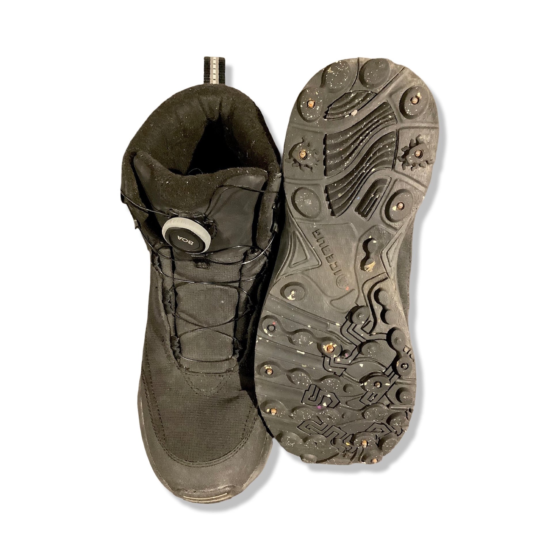 Yttersulan med BUGrip® har 13 dynamiska dubbar i karbidstål som anpassar sig efter underlaget och ger säkert fäste på allt från blankis till torr asfalt. Ovandelen är gjord i slitstarkt, vattenavvisande ripstop av 100% återvunnen PET med bluesign®-godkännande, och reflekterande detaljer ökar synligheten i mörker. BOA® Fit System ger snabb, exakt snörning och en passform som sitter på plats.